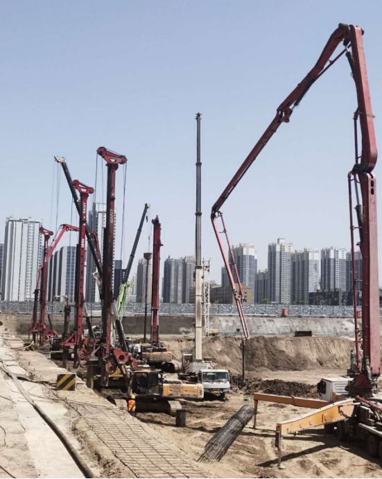 多臺大型機(jī)械設(shè)備同時開鉆 繁忙畫面組成了宏大悅耳的施工樂章
