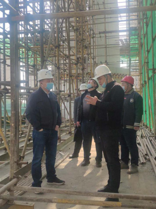 近日,甘肅省建筑科學(xué)研究院有限公司副總經(jīng)理袁寧一行來到建研建設(shè)公司清真寺改造項(xiàng)目視察指導(dǎo)工程質(zhì)量和安全工作。建研建設(shè)公司副經(jīng)理雷鳴、一公司經(jīng)理蔡文杰和項(xiàng)目經(jīng)理王瀚張陪同檢查。