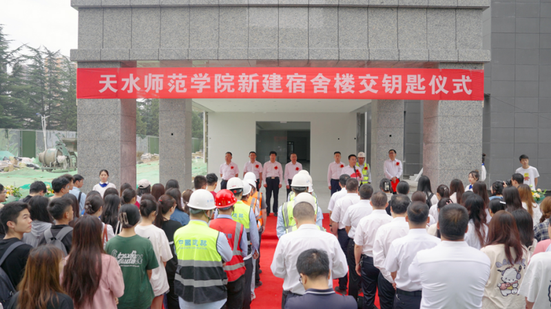 施工單位介紹了學(xué)生宿舍樓項(xiàng)目建設(shè)情況并向天水師范學(xué)院黨委書記劉振奎交接學(xué)生宿舍樓鑰匙