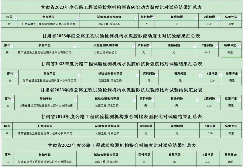 比對試驗(yàn)是通過多個(gè)試驗(yàn)室間比對來確定試驗(yàn)室檢測能力的活動,也是考察試驗(yàn)室運(yùn)行是否滿足質(zhì)量管理要求的主要手段。甘肅省建設(shè)工程檢驗(yàn)檢測認(rèn)證中心有限公司作為甘肅省公路工程綜合乙級檢測單位參加本次比對試驗(yàn),單位各級領(lǐng)導(dǎo)高度重視,市政公路專業(yè)事業(yè)部積極組織檢測人員參與本次公路行業(yè)比對試驗(yàn),安排檢測人員對照檢測儀器設(shè)備、檢測環(huán)境、數(shù)據(jù)分析嚴(yán)格按照操作規(guī)程及作業(yè)指導(dǎo)書要求進(jìn)行檢測,并根據(jù)本次比對試驗(yàn)的視頻要求對整個(gè)試驗(yàn)過程進(jìn)行了全程錄像。甘肅省建設(shè)工程檢驗(yàn)檢測認(rèn)證中心有限公司試驗(yàn)結(jié)果Z比分?jǐn)?shù)均小于2.0,六項(xiàng)檢測參數(shù)均取得滿意結(jié)果。通過本次比對試驗(yàn)證明,甘肅省建設(shè)工程檢驗(yàn)檢測認(rèn)證中心有限公司在人員、設(shè)備、環(huán)境、試驗(yàn)方法掌握等各方面均持續(xù)保持較高的檢測技術(shù)能力,符合上級主管部門對試驗(yàn)檢測機(jī)構(gòu)持續(xù)保持檢測能力的要求。