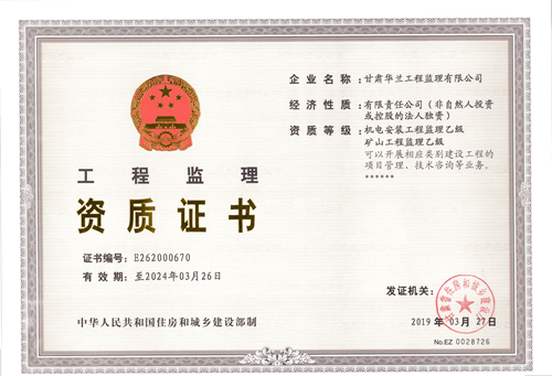 礦山工程監(jiān)理乙級(jí)資質(zhì)證書!