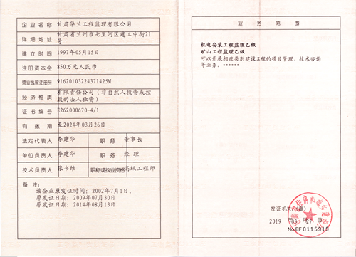 熱烈祝賀華蘭監(jiān)理公司獲得機(jī)電安裝工程監(jiān)理乙級(jí)、