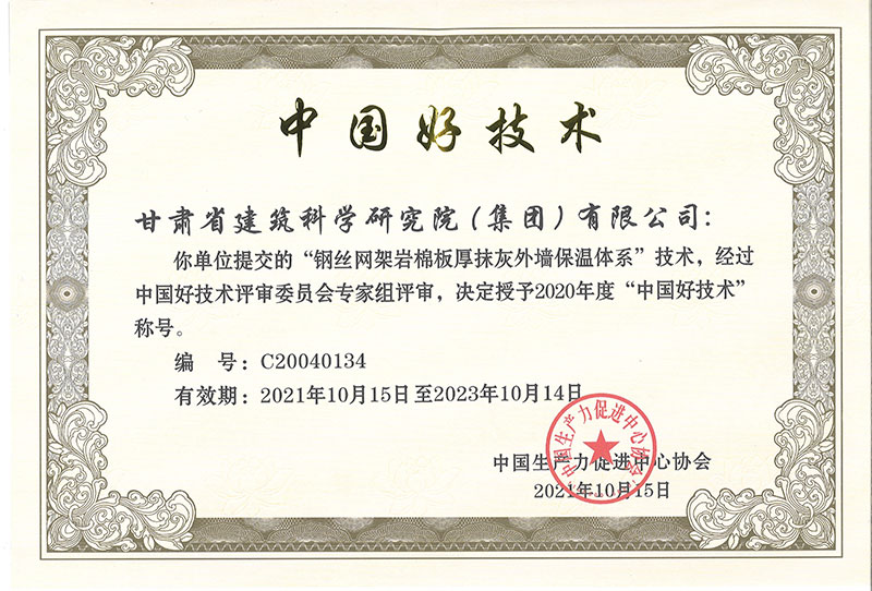 2021年中國(guó)好技術(shù)”鋼絲網(wǎng)架巖棉板厚抹灰外墻保溫體系
