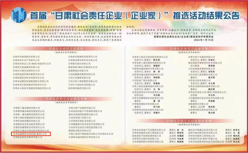 日前,由甘肅日報(bào)社、甘肅省人民政府國有資產(chǎn)監(jiān)督管理委員會(huì)、甘肅省工商業(yè)聯(lián)合會(huì)、甘肅省社會(huì)科學(xué)院聯(lián)合舉辦的“首屆甘肅社會(huì)責(zé)任企業(yè)(企業(yè)家)推選活動(dòng)”已順利結(jié)束,甘肅省建筑科學(xué)研究院(集團(tuán))有限公司榮獲“甘肅社會(huì)責(zé)任企業(yè)提名”。