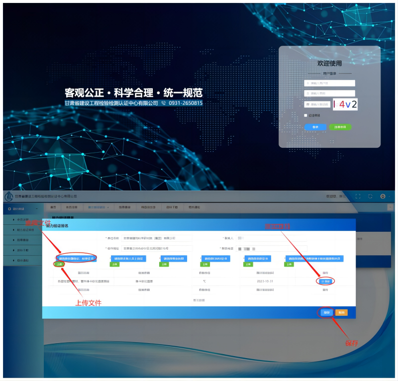 “能力驗(yàn)證系統(tǒng)”分為管理端和用戶端兩個(gè)模塊,參加能力驗(yàn)證報(bào)名的單位可通過甘肅省建筑科學(xué)研究院(集團(tuán))有限公司官方網(wǎng)站進(jìn)入“能力驗(yàn)證系統(tǒng)”進(jìn)行注冊并登錄。通過“能力驗(yàn)證系統(tǒng)”即可完成能力驗(yàn)證報(bào)名、資料下載、數(shù)據(jù)上傳以及結(jié)果查詢等業(yè)務(wù)。甘肅省建設(shè)工程檢驗(yàn)檢測認(rèn)證中心有限公司可使用管理端對報(bào)名單位信息進(jìn)行審核與批復(fù)。該系統(tǒng)替代了以往使用郵寄紙質(zhì)材料的傳統(tǒng)資料收集方式,使用數(shù)字化網(wǎng)絡(luò)平臺(tái)極大簡化了收集過程,提高了工作效率,提升了企業(yè)信息化、數(shù)字化建設(shè)水平。