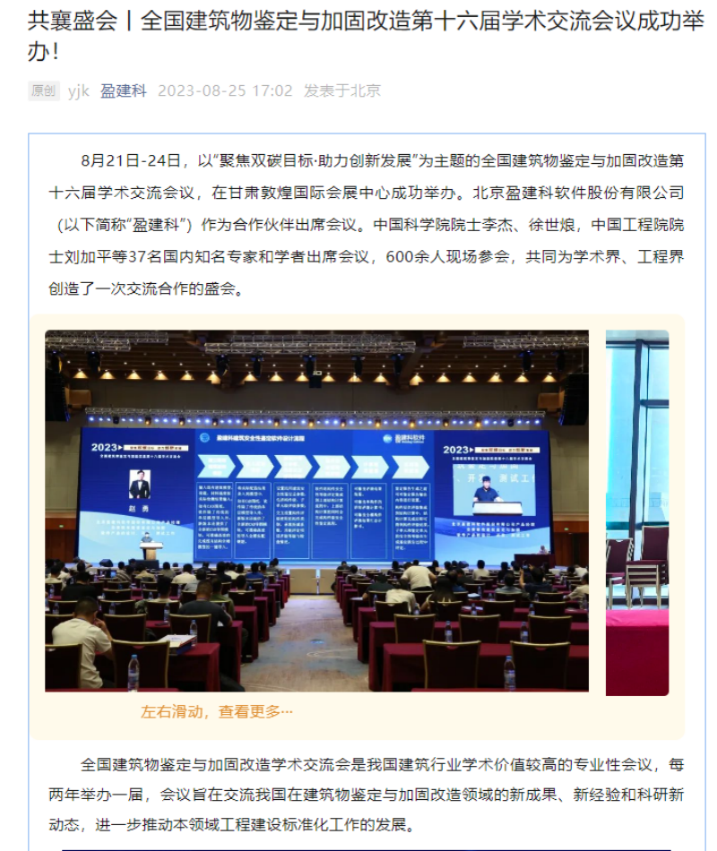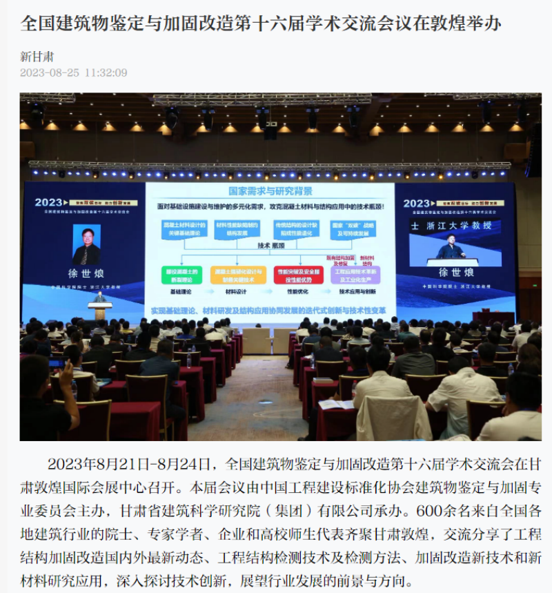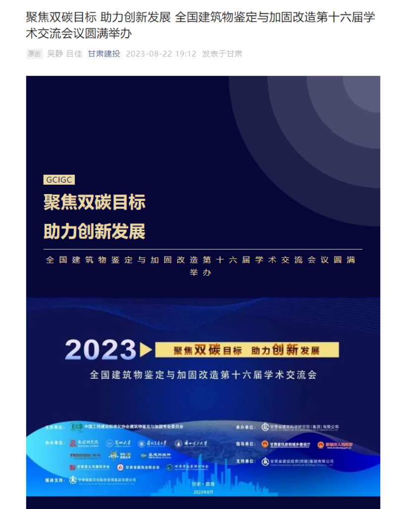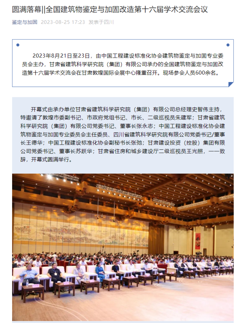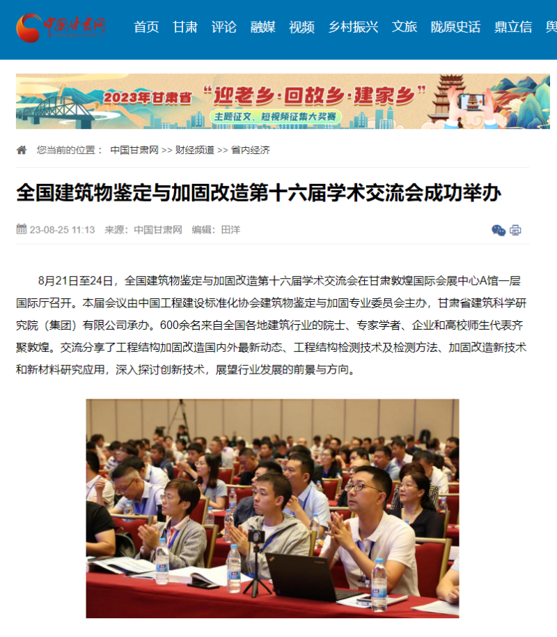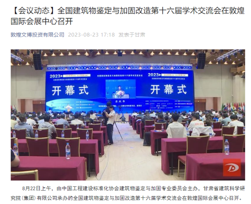 8月21日-8月24日,全國建筑物鑒定與加固改造第十六屆學(xué)術(shù)交流會在甘肅敦煌召開,由掌上敦煌、視聽甘肅、甘肅建科院視頻號平臺對會議現(xiàn)場進(jìn)行直播,多家主流媒體紛紛聚焦報道。