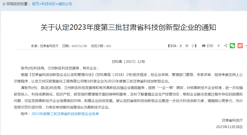 此次榮獲“2023年度甘肅省科技創(chuàng)新型企業(yè)”稱號(hào),是對(duì)公司創(chuàng)新能力建設(shè)的肯定,同時(shí)也讓全體員工時(shí)刻牢記只有通過(guò)提高公司的創(chuàng)新研發(fā)能力,才能在市場(chǎng)競(jìng)爭(zhēng)中取得先機(jī),促進(jìn)公司高質(zhì)量的發(fā)展。