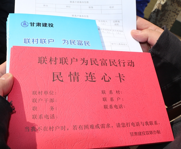 行動(dòng)結(jié)束之后,行動(dòng)小組向每戶人家都發(fā)放了“聯(lián)村聯(lián)戶 為民富民”宣傳手冊(cè)和民情連心卡,讓他們有需求早反應(yīng),也可以有困難早幫助。