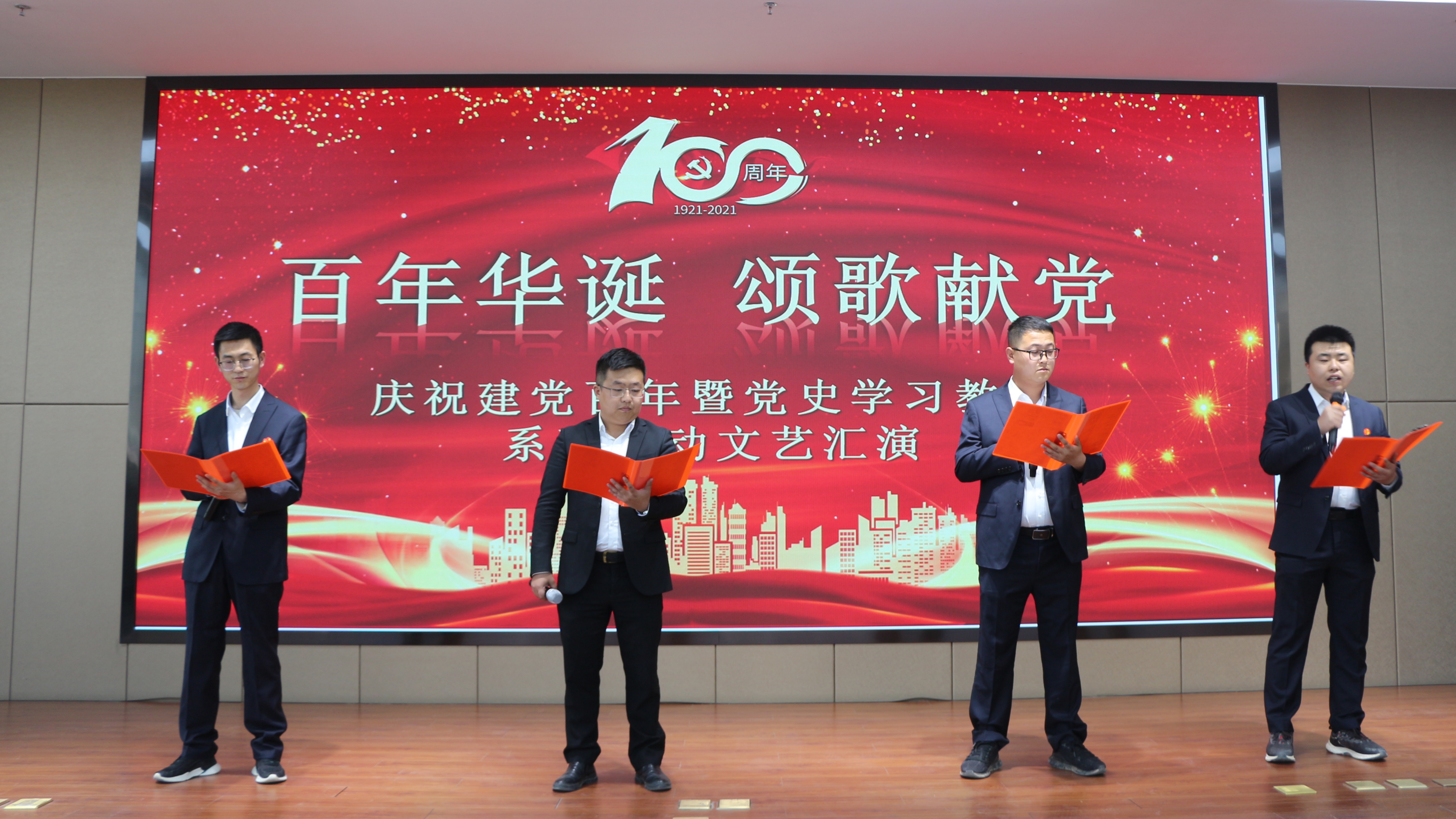 演出正式拉開帷幕前,由甘肅省建筑科學(xué)研究院有限公司副總經(jīng)理、甘肅建研建設(shè)公司總經(jīng)理史智偉致開幕詞。首先他代表公司領(lǐng)導(dǎo)班子向全體黨員干部和演出人員表示問候和感謝,接著他從黨走過的100年的光輝歷史出發(fā),指出中國(guó)共產(chǎn)黨是不斷開拓進(jìn)取、與時(shí)俱進(jìn)的黨;是經(jīng)得起各種考驗(yàn),勇于在困難和挫折中奮進(jìn)的黨,建研建設(shè)公司在黨的正確領(lǐng)導(dǎo)下,取得了豐碩成果。最后,他鼓勵(lì)全體干部職工積極發(fā)揮才藝特長(zhǎng),唱出建科人的心聲,展示建科人的風(fēng)采,表達(dá)對(duì)黨的感恩之情。