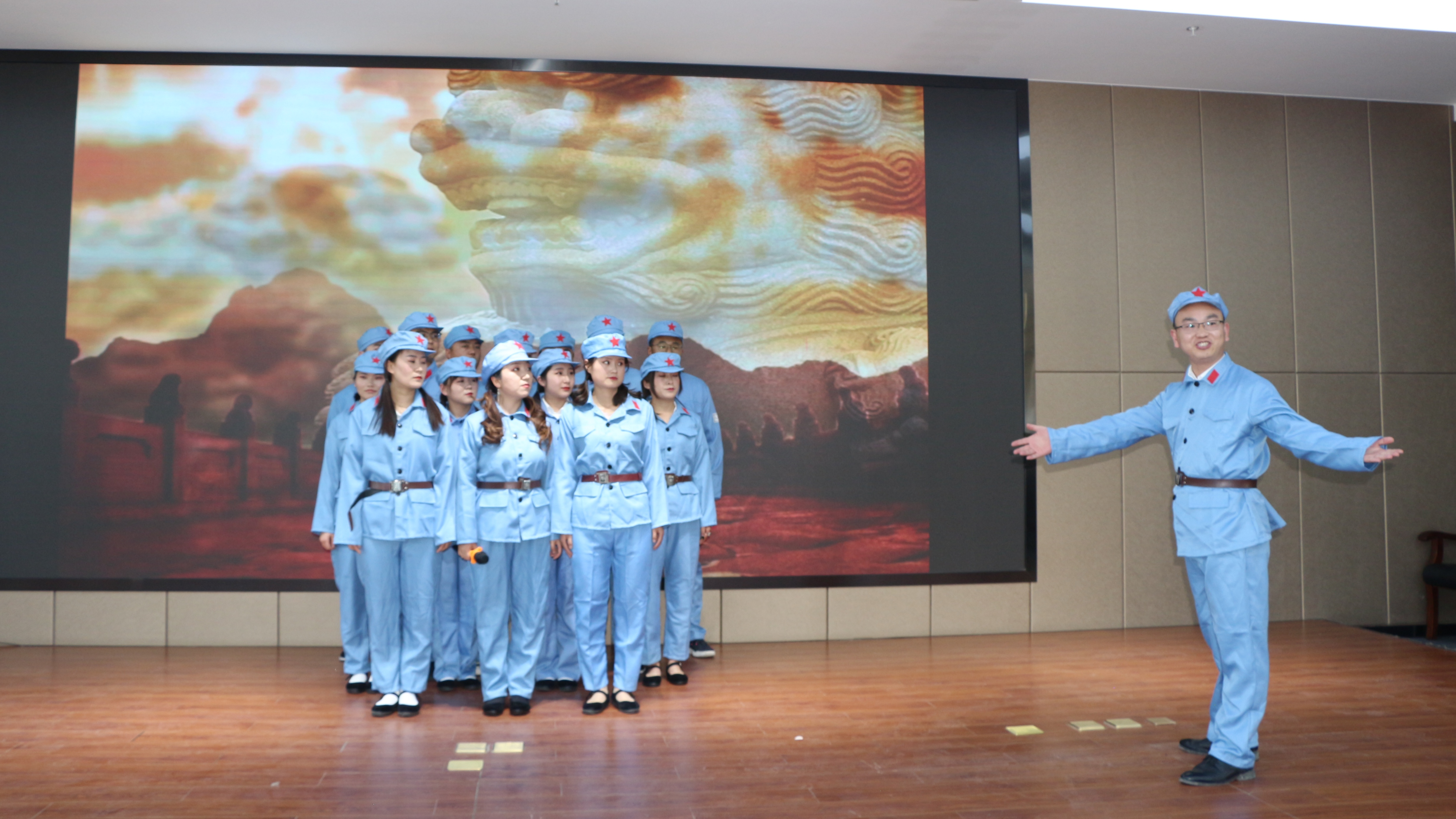 歡快的旋律,激情的演繹,演出在歌舞《工作狂想曲》中拉開了帷幕,《歌唱祖國(guó)》《紅旗飄飄》《我的中國(guó)心》《國(guó)家》等愛國(guó)歌曲,演出者懷著滿腔激情,用嘹亮的歌聲,熱情的舞蹈,表達(dá)了對(duì)偉大祖國(guó)的衷心依戀和真誠(chéng)歌頌;詩(shī)朗誦《百年奮斗 砥礪輝煌》抒發(fā)了愛黨愛國(guó)之情,《沁園春雪》悠揚(yáng)舒緩,余音繞梁;現(xiàn)代歌曲《倔強(qiáng)》和《等待》表現(xiàn)了青年職工積極向上的青春活力,彰顯出年輕人夢(mèng)想與光榮同在,理想與奮進(jìn)共行的魅力風(fēng)采;三句半《紅心向黨》在表達(dá)愛國(guó)主義情懷的同時(shí)為觀眾帶來了歡樂;詩(shī)音畫《盧溝橋》將所有觀眾帶到那段屈辱的歷史,讓人不禁想到為了革命事業(yè)犧牲的烈士,瞬間將整場(chǎng)演出推向高潮……