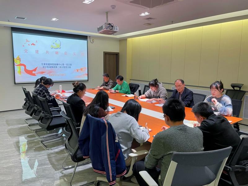 為深入開展學習貫徹習近平新時代中國特色社會主義思想主題教育,進一步推動黨員干部深刻領(lǐng)會“三抓三促”行動重要意義,提升黨建工作水平,加強黨建和生產(chǎn)經(jīng)營融入融通融合,實現(xiàn)黨組織優(yōu)勢互補,11月10日下午,甘肅建科院檢測中心第一黨支部與甘肅省建設設計咨詢集團有限公司第二設計院黨支部開展“黨建共融促實效”黨建聯(lián)學聯(lián)建主題黨日活動。雙方單位黨員代表、業(yè)務骨干代表共同參加了活動。