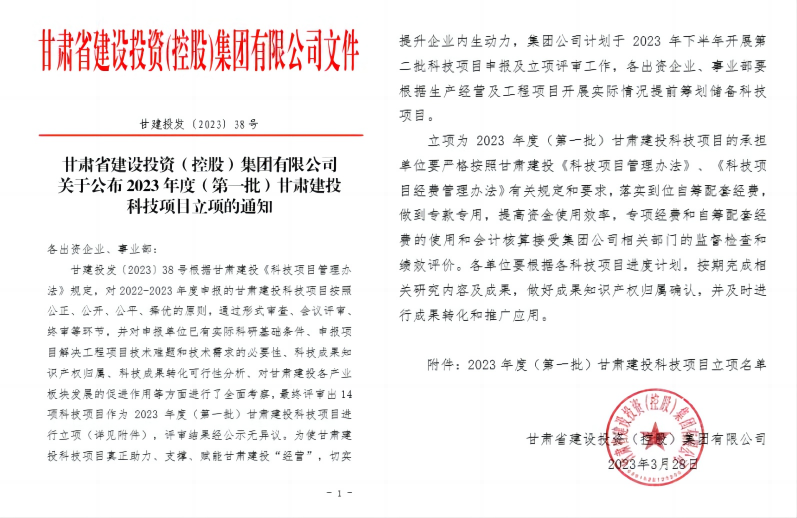 近日,由甘肅建科院科技研發(fā)中心申報(bào)并實(shí)施的“裝配式建筑質(zhì)量檢測(cè)關(guān)鍵技術(shù)體系研究”“雙碳政策下建筑建造階段碳排放及減排對(duì)策研究”2項(xiàng)科研課題在甘肅建投成功立項(xiàng),獲得科研經(jīng)費(fèi)255萬元。