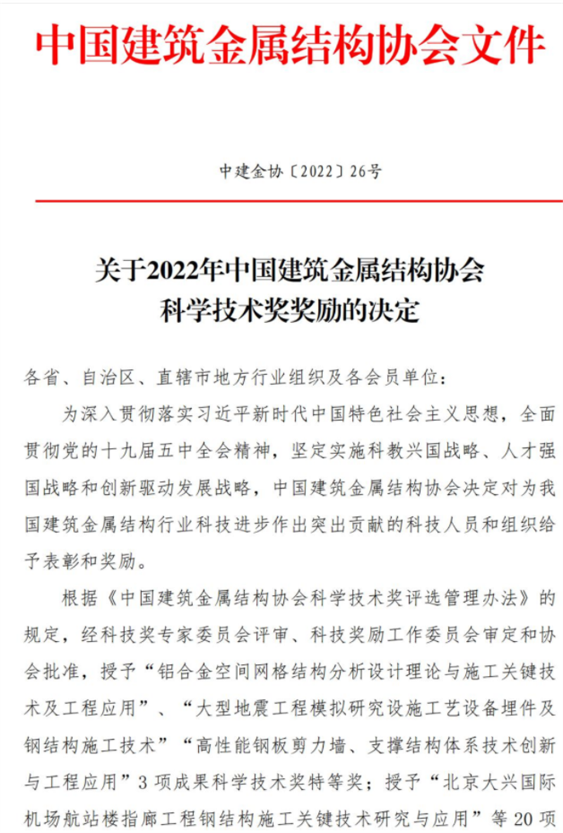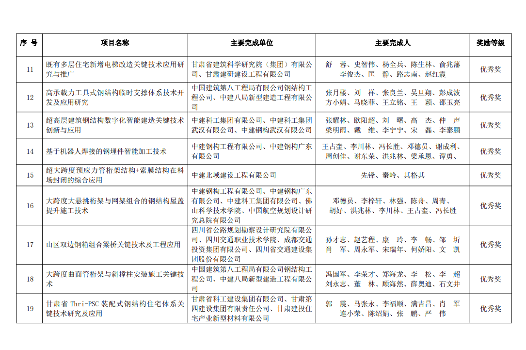 5月5日,由甘肅省建筑科學(xué)研究院(集團(tuán))有限公司巖土技術(shù)中心申報(bào)的“既有多層住宅新增電梯改造關(guān)鍵技術(shù)應(yīng)用研究與推廣”科研課題榮獲2022年度中國建筑金屬結(jié)構(gòu)協(xié)會科學(xué)技術(shù)獎優(yōu)秀獎,表明了國內(nèi)建筑鋼結(jié)構(gòu)行業(yè)對公司創(chuàng)新能力與技術(shù)水平的肯定與認(rèn)可。