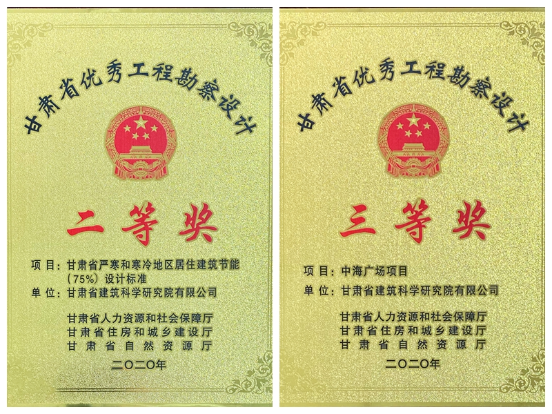 9月,2020年度甘肅省優(yōu)秀工程勘察設計獎評選結(jié)果正式公布,建科院(集團)公司申報的項目摘獲2個獎項。其中,科技研發(fā)中心申報的《嚴寒和寒冷地區(qū)居住建筑節(jié)能(75%)設計標準》項目榮獲二等獎(標準類),這是繼2010年以來又一次獲獎,并且獲獎等級提升為二等獎,同時也是第一次以標準類項目獲獎,實現(xiàn)了建科院科技工作上新的突破??辈煅芯克吨泻V場項目》喜獲2020年度甘肅省優(yōu)秀工程勘察設計獎勘察類三等獎。