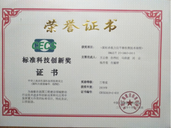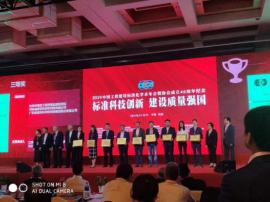 10月24日,中國(guó)工程建設(shè)標(biāo)準(zhǔn)化協(xié)會(huì)在浙江杭州舉辦“2019中國(guó)工程建設(shè)標(biāo)準(zhǔn)化學(xué)術(shù)年會(huì)暨協(xié)會(huì)成立40周年紀(jì)念”活動(dòng),并舉行了2019年度標(biāo)準(zhǔn)科技創(chuàng)新頒獎(jiǎng)儀式。建科院申報(bào)的《基樁承載力自平衡檢測(cè)技術(shù)規(guī)程》(DB 62/T 25-3065-2013)榮獲此次大賽三等獎(jiǎng),建科院總工程師、獲獎(jiǎng)標(biāo)準(zhǔn)的主要起草人王公勝同志帶隊(duì)參加了本次會(huì)議并上臺(tái)領(lǐng)獎(jiǎng)。