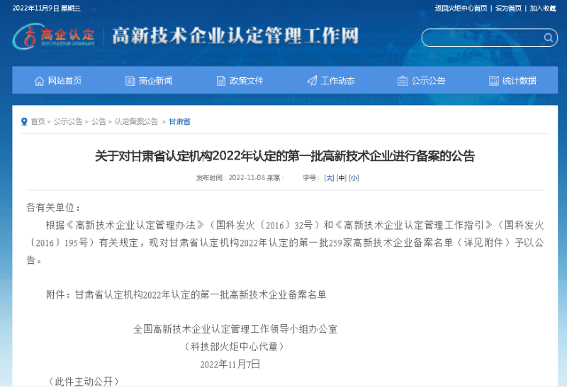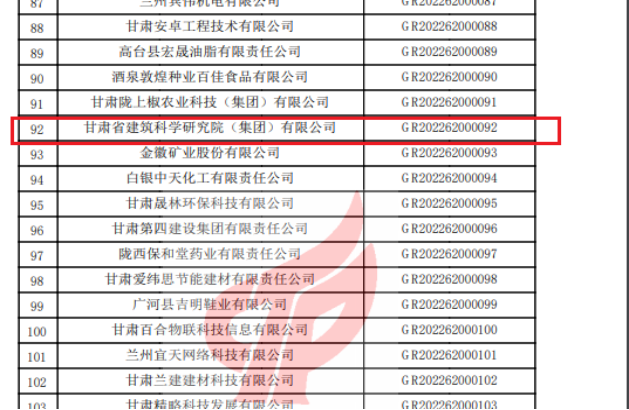 近日,高新技術(shù)企業(yè)認(rèn)定管理工作網(wǎng)發(fā)布公告,公布了甘肅省認(rèn)定機(jī)構(gòu)2022年認(rèn)定的第一批高新技術(shù)企業(yè)進(jìn)行備案名單。甘肅建科院榜上有名,順利通過高新技術(shù)企業(yè)復(fù)評。