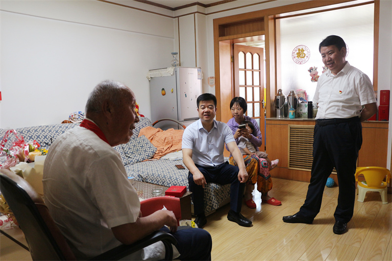 集團(tuán)公司副總經(jīng)理陳志亮,建科院公司黨委書(shū)記、董事長(zhǎng)張永志及機(jī)關(guān)部室相關(guān)負(fù)責(zé)人一行看望了67年黨齡的離休黨員崔巨貴老人,向老人送上了黨的溫暖和關(guān)懷。當(dāng)看到老人精神矍鑠、性格開(kāi)朗、身體健康時(shí),大家都非常高興,囑咐老人的子女們要繼續(xù)照顧好家里的“寶貝”,讓老人心情舒暢,享受幸福的晚年?!包h對(duì)我太好了,公司經(jīng)??赐遥€幫我解決實(shí)際困難,這在舊社會(huì)是想都不敢想的事情,感謝你們,感謝中國(guó)共產(chǎn)黨和甘肅建投黨委!”臨別前,崔巨貴老人還特別囑咐道,要按時(shí)給黨組織交納黨費(fèi)。