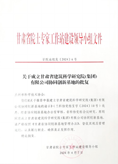近日,從甘肅省科協(xié)獲悉,由甘肅建科院公司申報(bào)的“甘肅省建筑科學(xué)研究院(集團(tuán))有限公司協(xié)同創(chuàng)新基地”獲甘肅省院士專家工作站建設(shè)領(lǐng)導(dǎo)小組正式發(fā)文批復(fù)成立,并獲專項(xiàng)資助經(jīng)費(fèi)20萬(wàn)元。這是甘肅建科院公司獲批成立的第一個(gè)引進(jìn)院士專家團(tuán)隊(duì)的科研創(chuàng)新平臺(tái),也標(biāo)志著甘肅建科院公司在高水平科研平臺(tái)建設(shè)方面邁出了堅(jiān)實(shí)一步。
