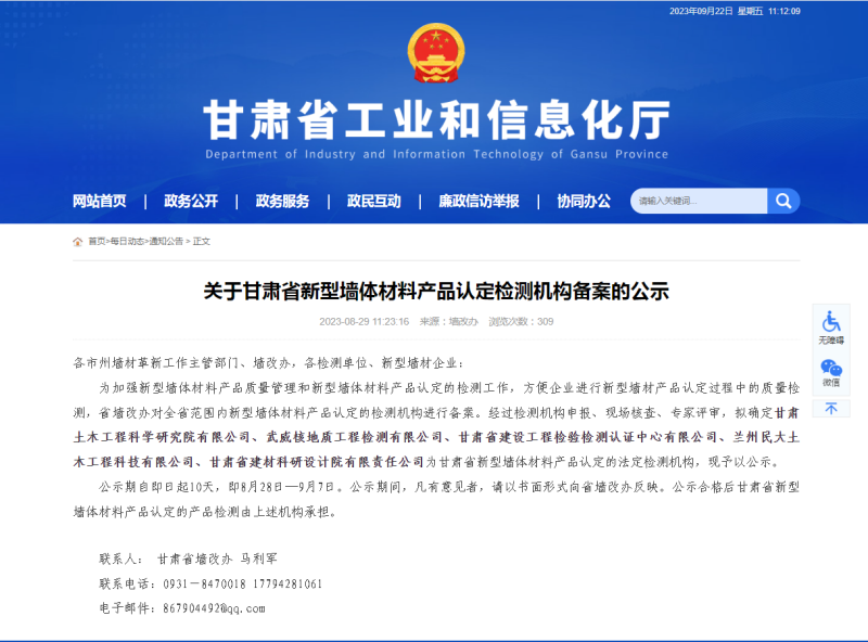 9月21日,在甘肅建科院認(rèn)證中心成為甘肅省新型墻體材料產(chǎn)品備案認(rèn)定檢測(cè)機(jī)構(gòu)后,省墻改辦主任一行蒞臨甘肅省建設(shè)工程檢驗(yàn)檢測(cè)認(rèn)證中心有限公司,在甘肅建科院黨委副書記、總經(jīng)理史智偉,總工王公勝陪同下考察了公司生產(chǎn)經(jīng)營(yíng)情況、檢驗(yàn)檢測(cè)水平以及質(zhì)量技術(shù)把關(guān)等相關(guān)業(yè)務(wù)能力,并進(jìn)行了工作指導(dǎo)。
