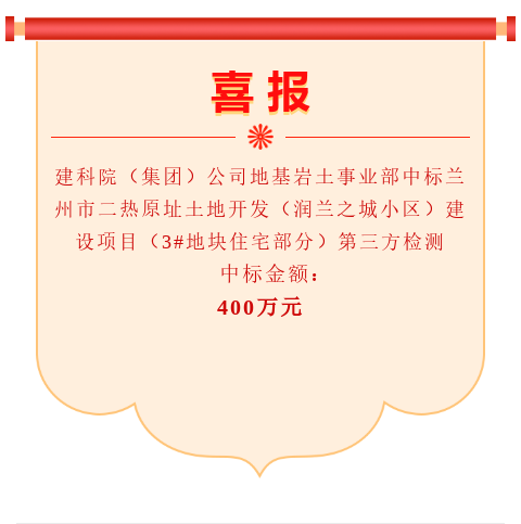 地基巖土事業(yè)部中標(biāo)蘭州市二熱原址土地開發(fā)(潤蘭之城小區(qū))建設(shè)項(xiàng)目(3#地塊住宅部分)第三方檢測