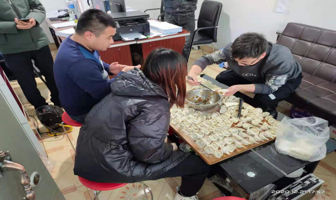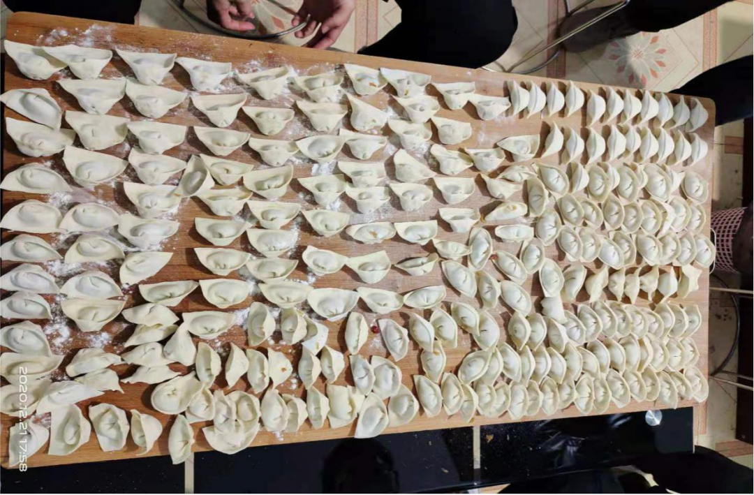 臨夏的下午四點(diǎn)半,暖陽還懶洋洋地照在人們的臉上,穿過干枯的樹枝,落在地上依稀的斑駁,臨夏檢測中心職工的身影就已經(jīng)忙碌了起來,大家紛紛趕到食堂,邊包餃子邊話佳節(jié)。伴隨著你一言,我一語,拌陷、和面、搓面球、搟面皮、包起成型,流水線工作一氣呵成,個(gè)個(gè)臉上都洋溢著喜悅與興奮。不用說包餃子的過程有多么精彩,就看這每個(gè)人包出的五花八門的餃子模樣,就讓人笑得合不攏嘴。2個(gè)小時(shí)300多個(gè)餃子輕輕松松包完了,看著自己包的餃子,成就感滿滿。