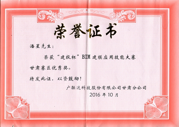 建模大賽階段為8月1日—9月13日,以每天解鎖相應(yīng)的關(guān)卡,然后在規(guī)定的時(shí)間內(nèi)做出相應(yīng)的項(xiàng)目任務(wù)獲得每天的積分,最終的比賽得分由每關(guān)所獲得的積分和所完成項(xiàng)目的總系數(shù)分來(lái)確定。本階段我院科技研發(fā)中心BIM小組以企業(yè)為單位來(lái)進(jìn)行闖關(guān)建模,最終以甘肅賽區(qū)第三名的成績(jī)獲得“建投杯”造價(jià)BIM建模大賽優(yōu)秀企業(yè)獎(jiǎng),潘星同志以優(yōu)異的表現(xiàn)獲個(gè)人優(yōu)秀獎(jiǎng)。