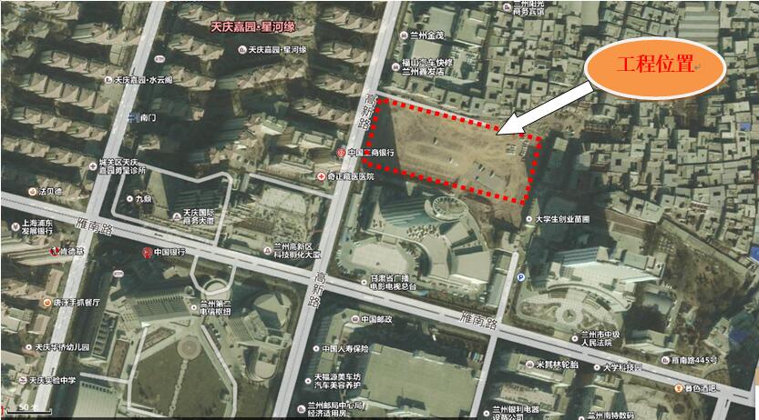 此項目位于蘭州市城關區(qū)張?zhí)K灘561號,蘭州高新區(qū)科技孵化大廈東側,蘭州郵區(qū)中心北側,項目占地總面積15954㎡,擬建場地基坑東西長約185m,南北寬約98m,基坑開挖深度13.72m~15.85m不等。