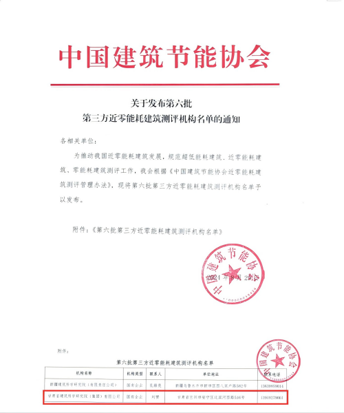 8月30日,中國建筑節(jié)能協(xié)會發(fā)布了第六批第三方近零能耗建筑測評機(jī)構(gòu)名單,甘肅建科院依托完善的管理體系和工作基礎(chǔ)、憑借自身豐富的咨詢經(jīng)驗和檢測技術(shù)優(yōu)勢以及完備的人才體系,獲評為第三方近零能耗建筑測評機(jī)構(gòu)。